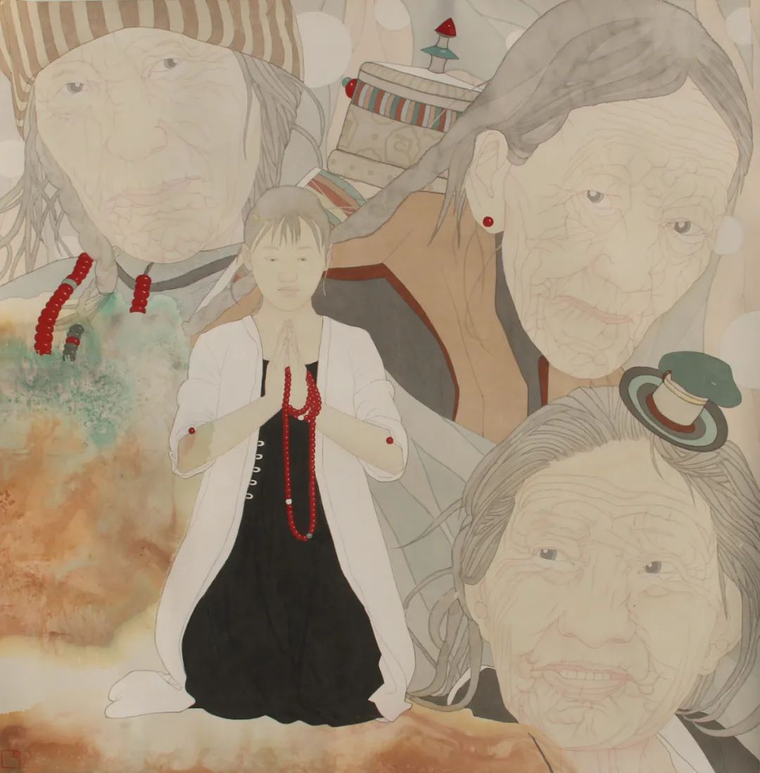 作品:《祈福中国》98cm×98cm 纸本国画