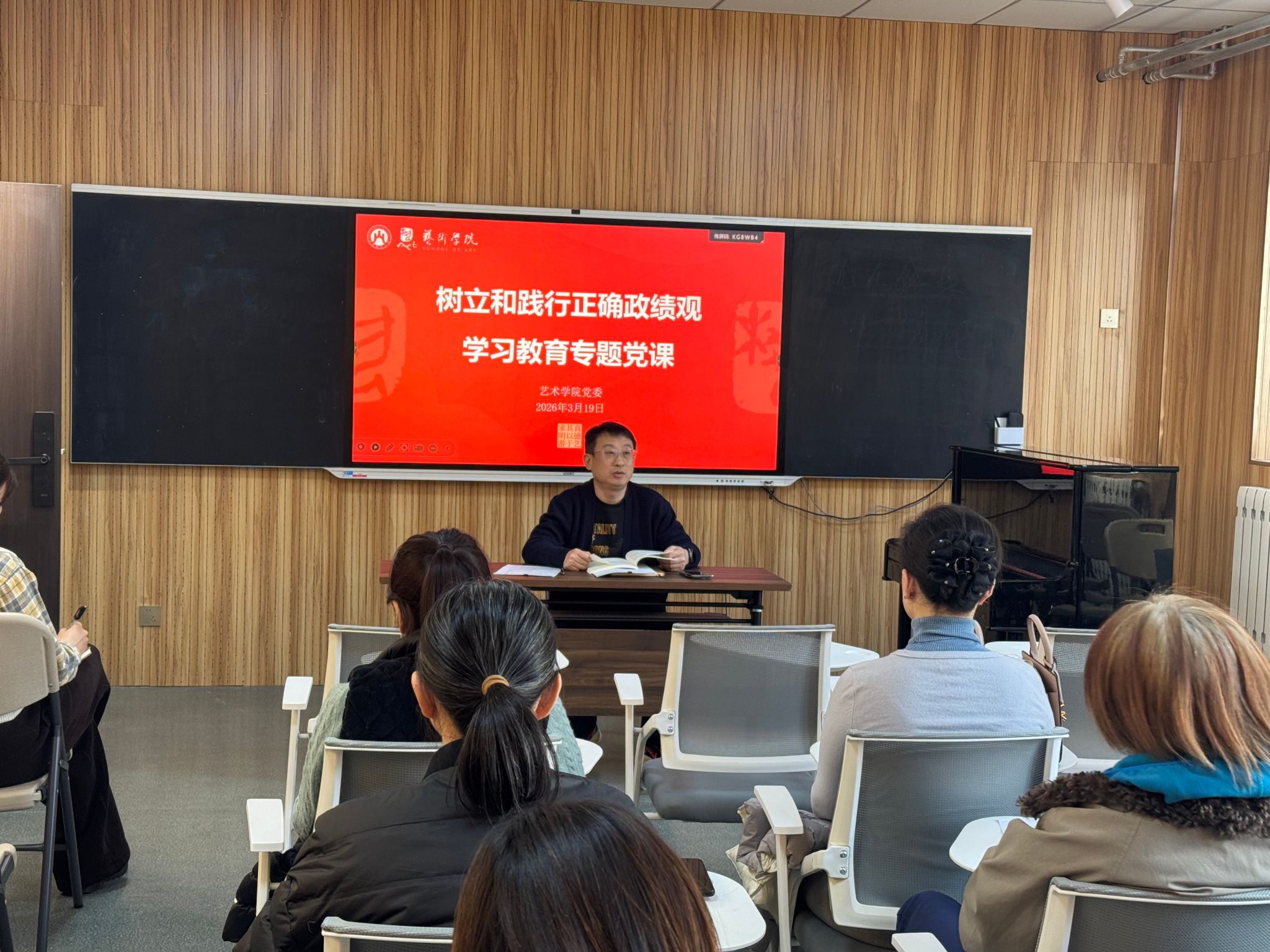 3月19日,艺术学院党委书记刘宝璋为教工党支部讲树立和践行正确政绩观学习教育专题党课。
