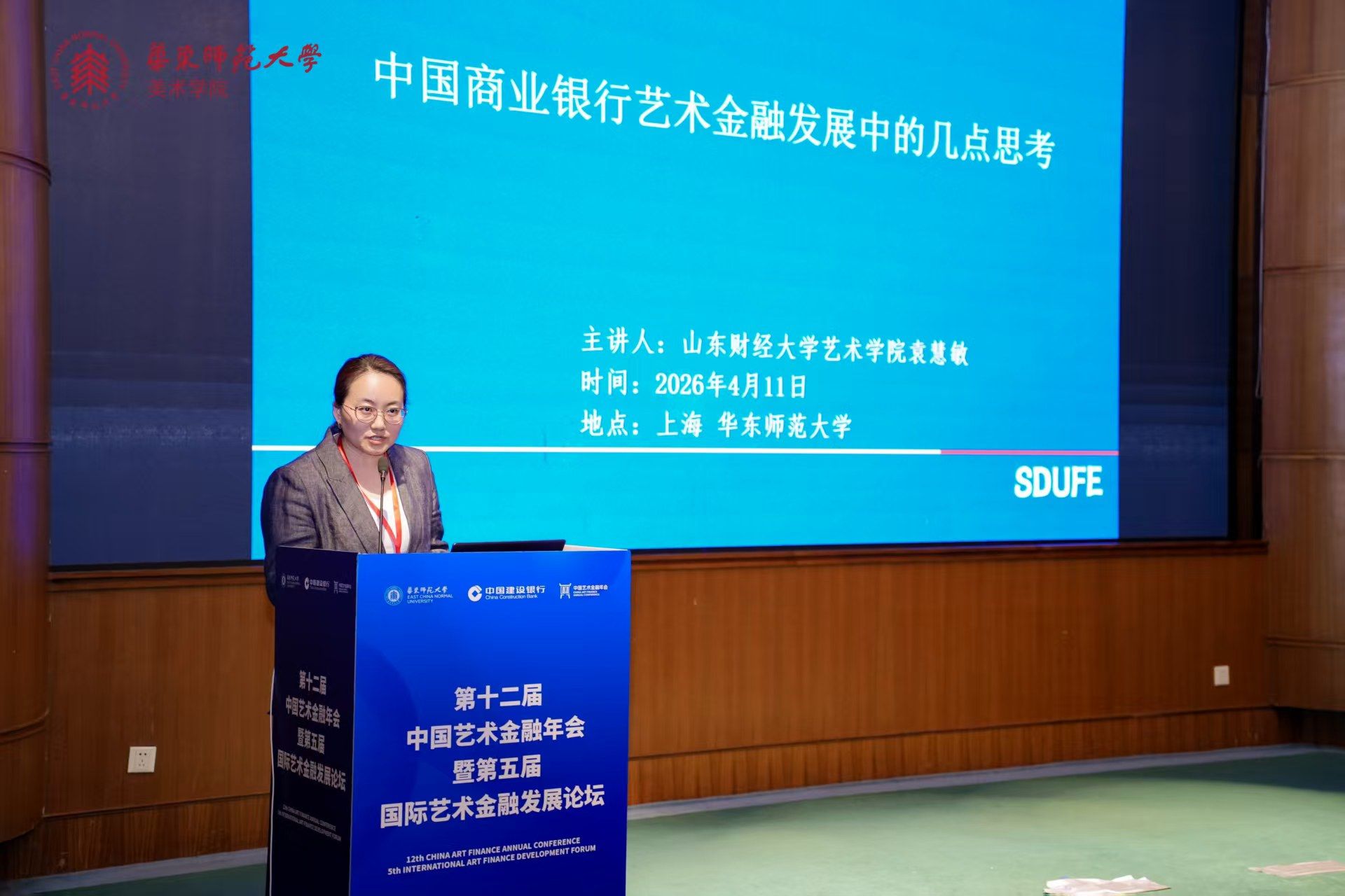 2026年4月11日,第十二届中国艺术金融年会暨第五届国际艺术金融论坛在华东师范大学普陀校区学术交流中心隆重举行。本届年会以“艺术金融:重塑艺术品市场发展形态”为主题,聚焦“十五五”规划开局之年我国艺术金融产业的创新发展与国际合作。艺术学院副院长袁慧敏受邀参会,在“艺术品市场新形态趋势与展望”分论坛发表题为《中国商业银行艺术金融发展中的几点思考》的主旨演讲,与百余位专家学者共同探讨行业前沿议题。