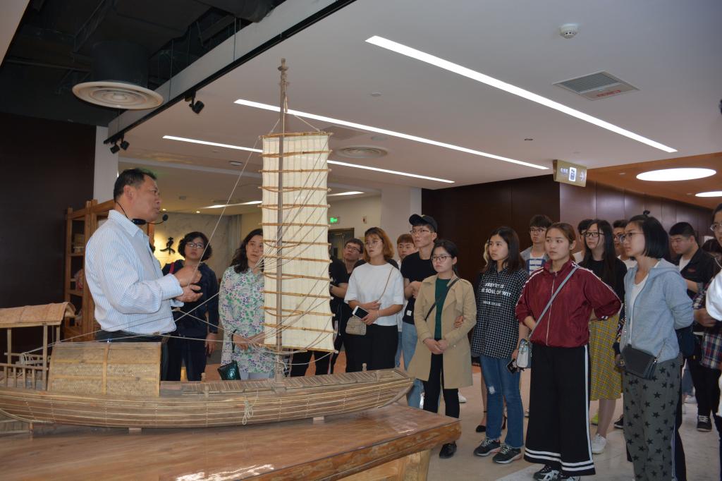 随后,杨会长带领师生们领略手工艺的世界。他为大家详细的介绍了每一件展品,并用栩栩如生的语言,让大家感受到了每一件作品都是一个故事,每一件作品都是时间年轮中最闪耀的一颗星。其中,我们参观了杨会长历时五年用木材雕刻的济南老火车站,作品的精细程度让人震惊。杨会长用心血与情怀诠释了“一件作品唤醒了一座城的记忆”。