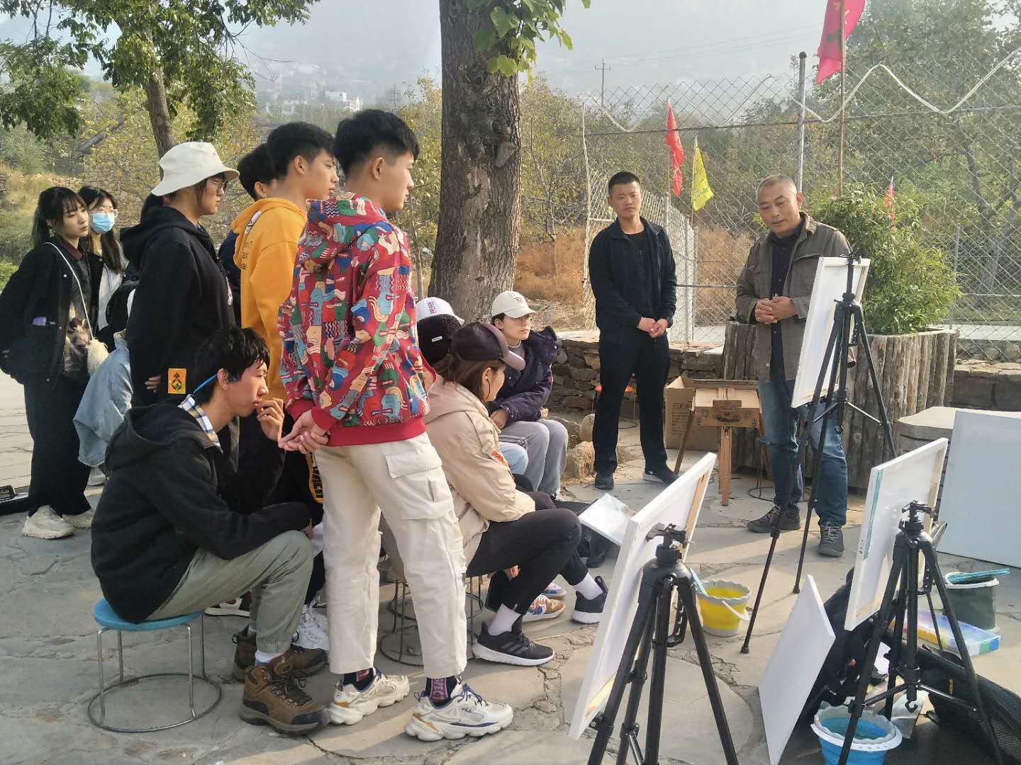写生教学期间,学院委派分管副院长、副书记共同随队参与协调和管理,8名指导教师每人负责一个班级的指导任务,大家认真负责,细致指导学生创作、热心关注学生生活,切实保障学生安全,共同保障了写生活动秩序和教学质量。10月22日,院长范正红、党委书记杨春丽专门陪同张书学副校长到写生基地看望写生师生、检查教学效果,对写生工作的有序开展给与了充分肯定。