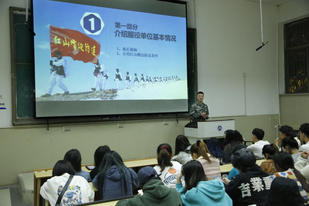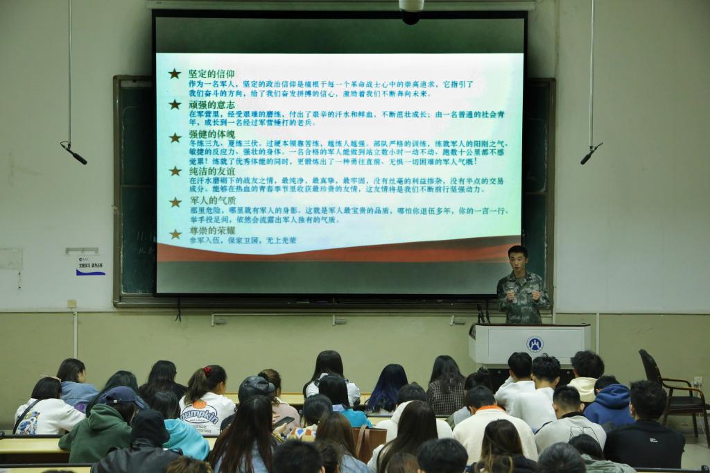 分享会结束前,老兵吴明帅为我们介绍了征兵政策,主要为身体体检要求和入伍优先政策。军旅是最苦的,但军人以苦为美,以苦为乐,以苦为荣,一次又一次的危难考验无不体现了军人的爱国情怀。“哪有什么岁月静好,不过是有人为我们负重前行。”通过本次分享会,同学们不光了解了军人背后的故事,更深切体会到了不忘初心、牢记使命的沉甸甸的责任感。