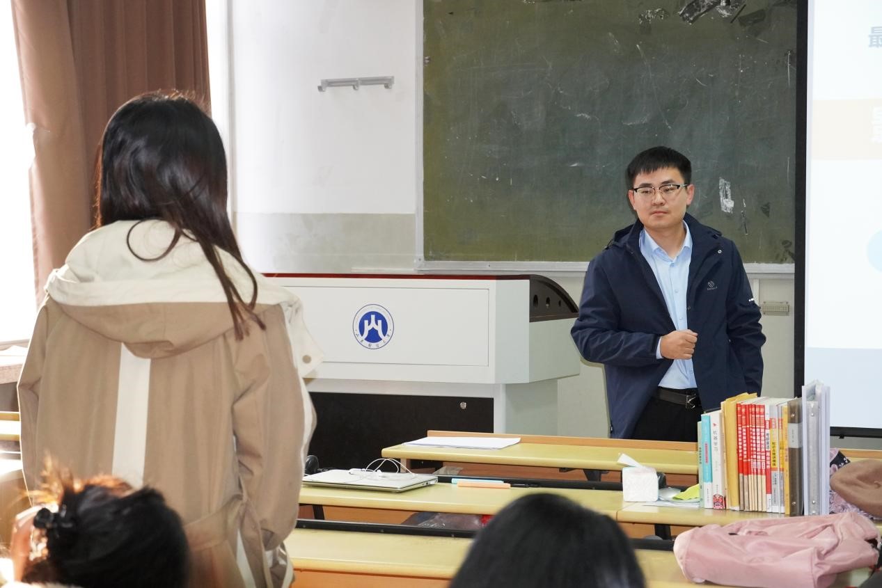 丛老师首先阐述了大学生应提升人生辨识度,做一个人品与衣品相得益彰的人,讲述了在不同场合的形象与仪容的重要性,并叙述了作为大学生应如何做一个自信的演讲者,与大家分享了相关的演讲技巧以及自己演讲时的经历和经验。随后丛老师为大家提出四条职场小建议,一是要做好一份优秀的简历,二是要准备一套适合自己风格的西装,三是要准备一个官方的邮箱,四是要学会制作美观的幻灯片,这些实用的技巧与切实的建议使大家受益匪浅。紧接着,丛老师强调专业学习的重要性,指出大学生要咬定“专业”不放松,做一个踏实的读书人,表明同学们应该对自己有一个明确而精准的定位,构建学习性组织,绘制个人学习发展蓝图和实施纲要,要在大学的学习生活中有目标地发展自己相应的才能,只有如此才有机会从日益激烈的竞争中找到自己前行的方向。丛老师强调影响大学生成长的是逻辑与格局,并对其结合其个人经历进行进一步的解释说明,提出大学生要学会做一个链接职场的社会人,主张同学们要有属于自己的职业、生活、交友圈。其次,丛老师就“榜样”“心态”“原始积累”以及“好组织好工作”展开讲解,希望同学们学会从身边优秀的人才身上吸收优点来弥补自己的不足,能够不积硅步进行点滴积累促成质变,与此同时强调在学习生活中,稳定心态的重要性,并为同学们的职业方向选择作出了引导。