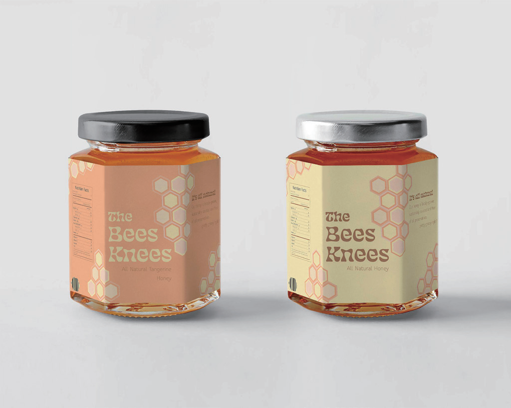 Looking at shelves of products and their packaging in the grocery store gave me the inspiration to make something that I would want to see on the shelves. Looking at honey packaging specifically, it looked a little outdated. Seeing this, I created a colorful package with shapes that complement the nature of honeycombs while adding a warm, retro feel.