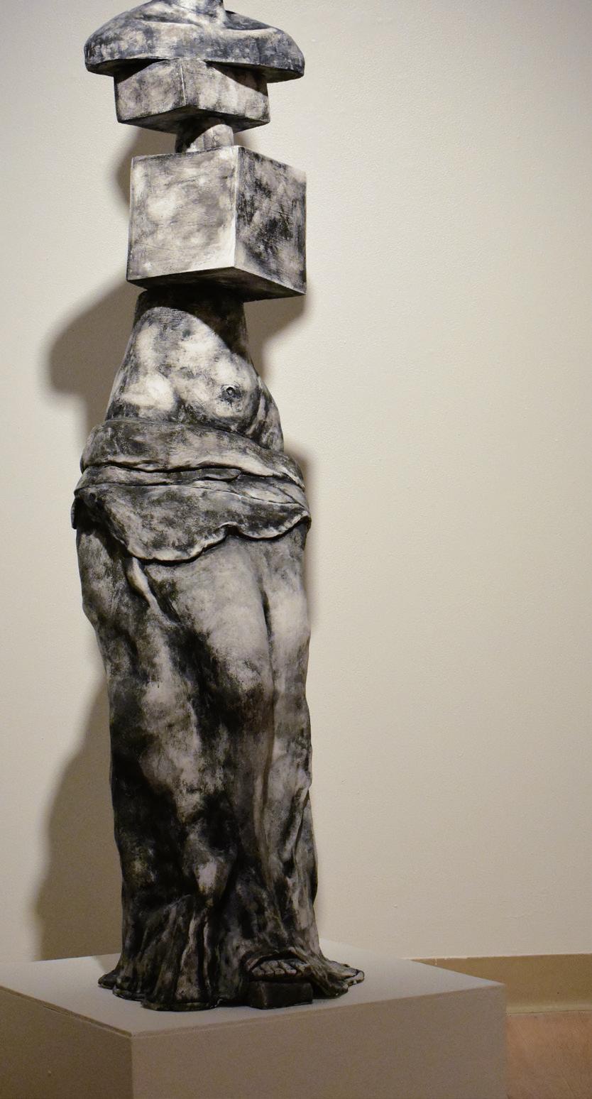 《窈窕淑女》结合了意大利文艺复兴时期艺术的古典风格和现代风格几何形状。这件作品旨在展示多年来社会上的女性是如何被迫适应的一定的经典形象和社会给我们的刻板印象。然而,在当今社会,许多女性正在摆脱这种心态,努力改变自己,以适应现代社会他们最自信的自我版本。