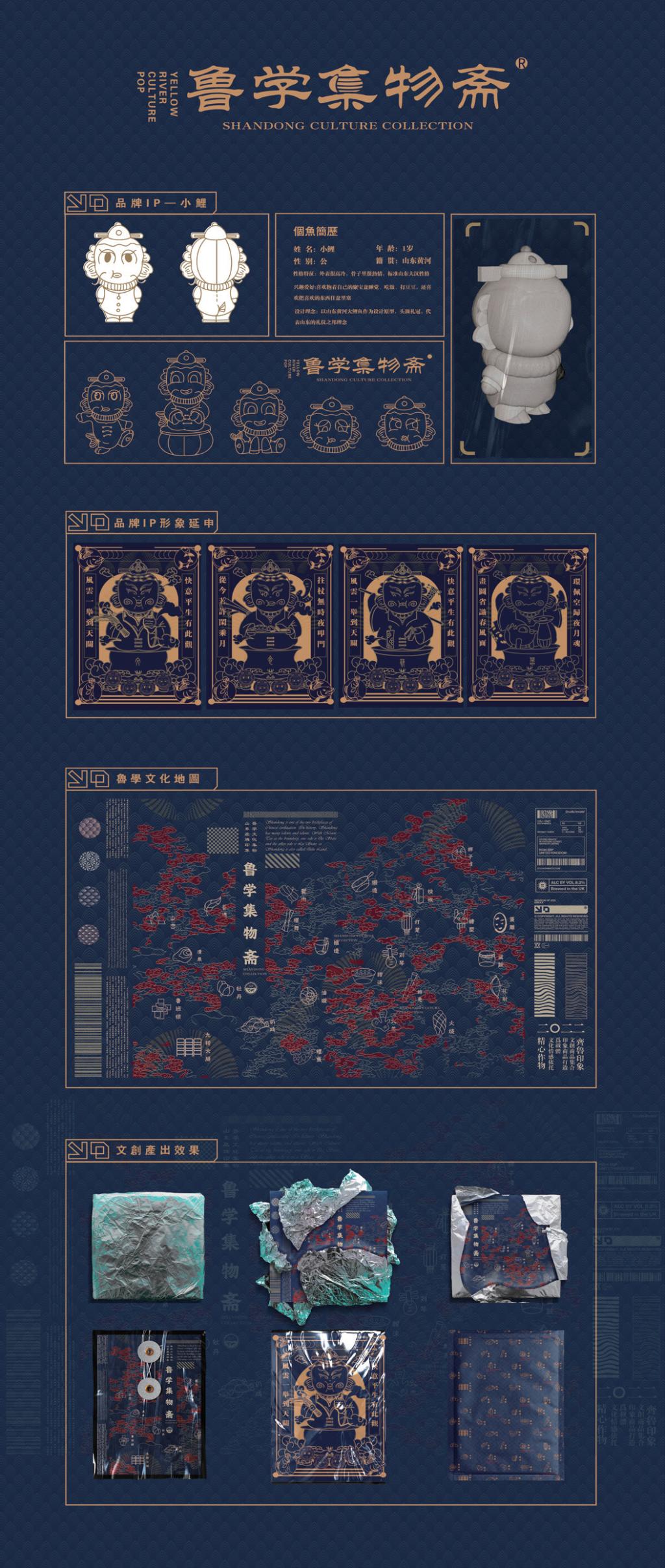 “鲁学集物斋”品牌,“鲁”即指齐鲁地区(山东省),“学”即指优秀传统文化,“鲁学”一词顾名思义,即指处在齐鲁地区的优秀传统文化,这里所涵盖的除了我们所熟知的山东省非遗,还有现代潮流文化的融入。“鲁学集物斋”意为打造一个坚固的文化容器,将山东省优秀的传统文化和新兴文化有秩序的、有组合的进行汇集,根据”文食艺器”四个基本模块进行框架构建,将齐鲁优秀文化进行基本分类,让其有序可列,可以让更多人清晰、直接地了解齐鲁地区的优秀文化。