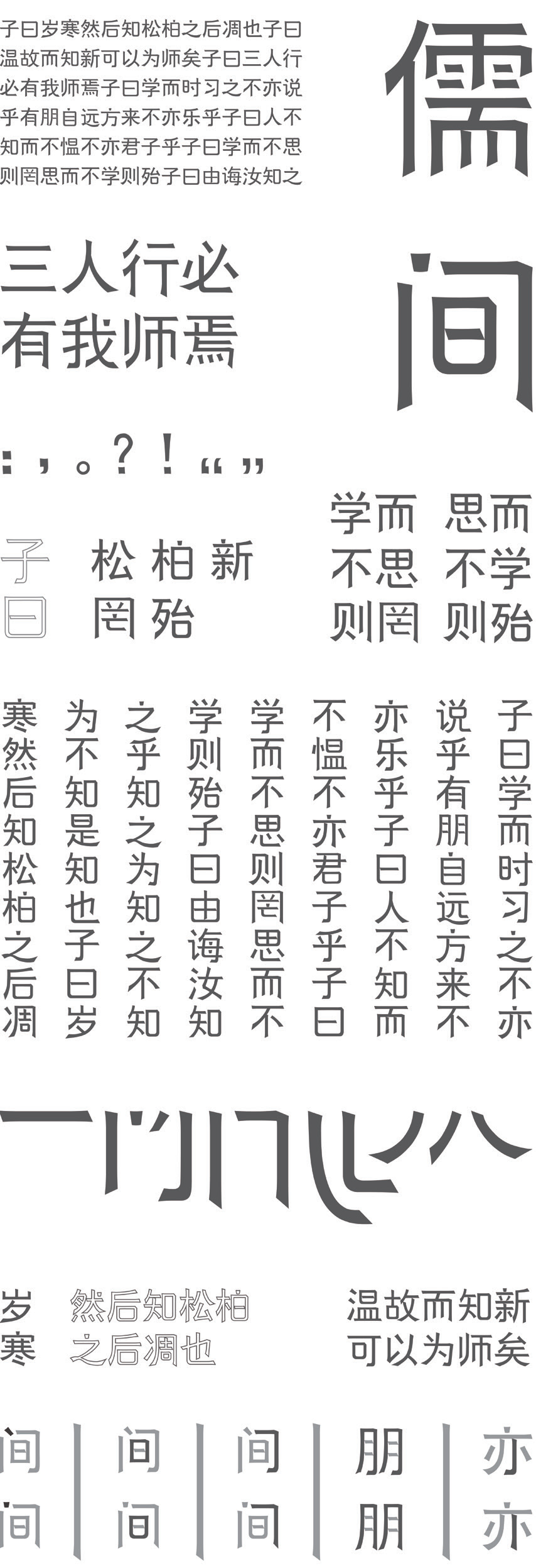The design is based on modern fonts and inspired by Confucian classics . combining conventional font and calligraphy font , and absorb the unique technique of expression of the ancient text structure , play their own personalized characteristic , at the same time , the Confucian culture belongs to the font characteristics of The Times , formed its own perfect font display system , glyph stable performance strong , vigorous atmosphere , at the same time has a unique personalized expression . The combination of ancient Chinese characters and modern font design , through modern design software , design thinking and design methods , absorbs the flash points of ancient characters and integrates them into a new type of font , which contains the traditional culture of Confucius and Mencius . The combination of modern and historical design can be applied in the future .