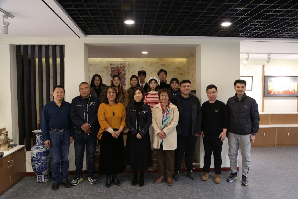 2023年11月22日,我院就业办主任史萌、设计系副主任马熙逵,合作共建单位山东瑞博广告有限公司负责人田德柱、设计总监张言乐带领学生代表共同走进山东省工艺美术协会,在协会会长袁敏的带领下参观了协会馆藏并进行了深入交流。参观中,师生深入了解了山东地区丰富的工艺美术种类和传统技艺。展馆内陈设的各种饱含山东本土特色的砚台、刺绣、瓷雕、核雕、石雕、锡雕、竹编、琉璃、泥塑等各种类型的工艺美术作品,或精致细腻,或大气磅礴,既富有传统韵味,又融入了现代元素,展现出工艺美术大师们独特的艺术风格和精湛的手工技艺。让师生对山东工艺美术有了更深入的了解。