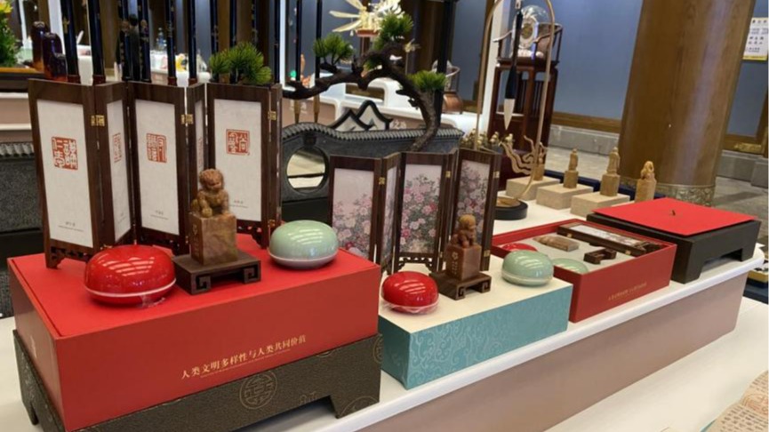 学院在艺术创作服务党和国家重大庆典活动中,在塑造和传播国家形象中积极探索与实践。2020、2021连续两年,学院师生团队设计社会主义核心价值观民艺日历大礼包,应用于中宣部开展的“送文化进万家活动”。2022年7月,学院师生团队主创完成的“第八届尼山世界文明论坛”伴手礼作为外交伴手礼被山东省委采纳并制作应用;先后承担学校视觉形象识别系统设计、建校70周年标识设计,招生宣传吉祥物与录取通知书的设计等,全力助推学校文化品牌建设;师生参与《中国民艺馆》图像编辑与全案设计、《即墨古城》《即墨古城-楹联》文旅策略全案策划与设计等;与山东博古文物艺术品修复有限公司共建文物艺术品修复实验室,服务我省文物艺术品修复事业发展,全面落实总书记“让文物活起来”的指示精神。