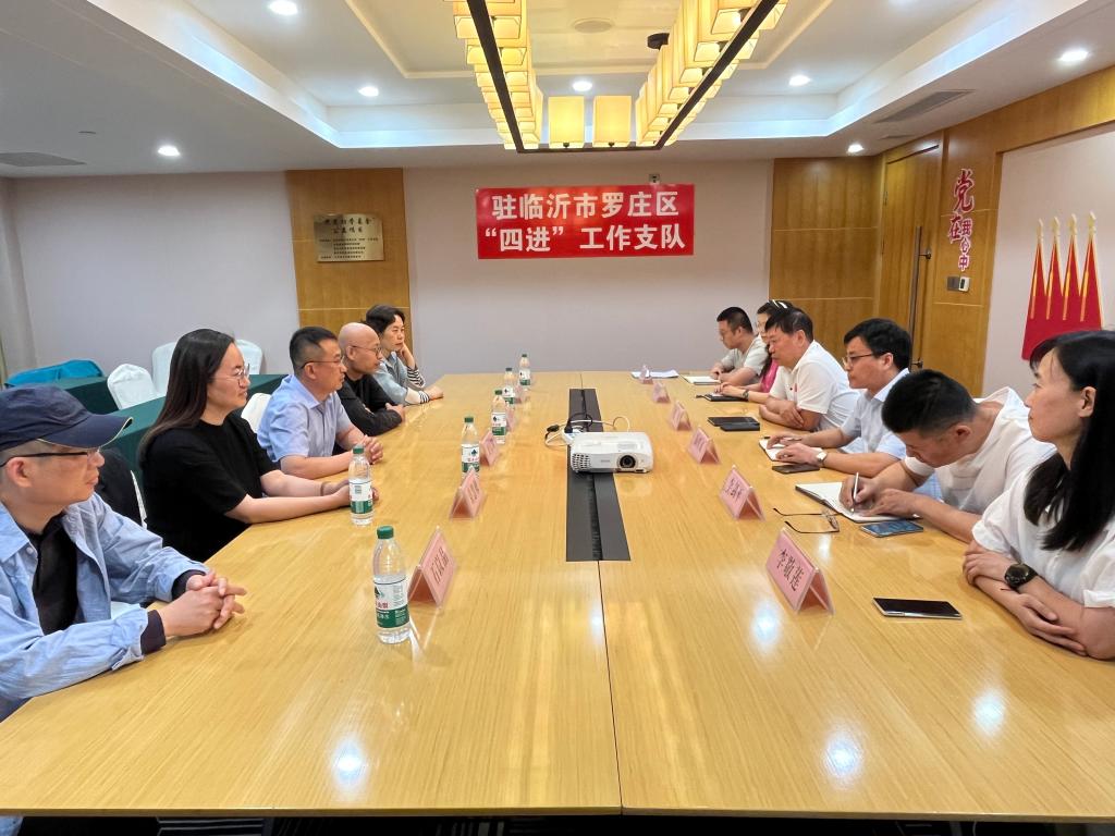 在临沂市罗庄区省派“四进”工作支队驻地,双方进行座谈。支队长张旭详细介绍了支队的工作内容,对学院李敬莲同志在“四进”工作期间的表现给予充分肯定。刘宝璋代表艺术学院感谢工作支队对李敬莲同志的关心,要求李敬莲同志进一步提高政治站位,充分发挥专业优势,为地方经济社会发展贡献力量。双方就校企合作、社会服务进行了交流。