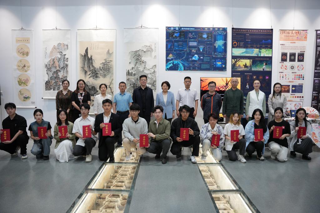 党委学生工作部部长杨哲、教务处处长于文广、团委书记王晓迪、党委宣传部副部长李清照、图书馆副馆长周朝晖,艺术学院全体教职工、2025届本科毕业生参加开幕式。开幕式前,2025届本科毕业生代表共同演唱歌曲《世界赠与我的》。开幕式后,与会领导、嘉宾、师生共同参观了作品展。