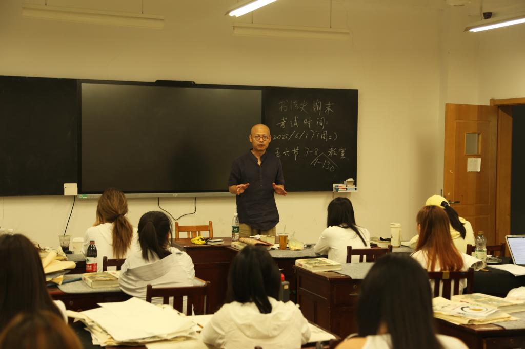 为进一步推进美术学(艺术品投资与鉴定、艺术金融方向)专业教育教学的高质量发展,全面落实立德树人根本任务,深入推动教学改革创新,提升青年教师教书育人能力和人才培养质量,美术系于6月13日上午,在章丘校区3101教室举办由宋述林副院长(主持工作)主讲的《历代山水画风格与演变》示范公开课,并同期召开了美术系教学研讨会。美术学专业2024级艺术金融方向1班全体同学以及高远、石以品、杨君谊、张翼飞、黄晓青、安又夫、刘智等青年教师参与了该活动。