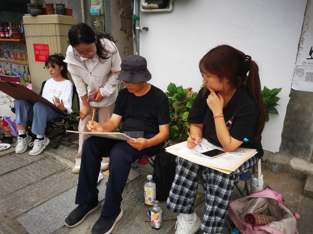 学院组织多个教学团队,11名专业教师,215名学生,一同前往写生调研基地。各教学团队充分挖掘当地思政教育资源,根据各专业需求,设计了贴合主题的教学内容。在屯溪老街,深入了解皖南地区的革命历史、中共皖南特委的发展历程与革命活动等,探寻红色基因传承密码;在宏村、西递,以古村落传统纹样的文化构建为切入点,讲授中国传统文明基因的现代阐释;在屏山,以“传统文化与乡村振兴”为方向,探寻优秀传统文化赋能乡村振兴的路径;在徽州文化博物馆,通过解读馆藏文物,讲述徽州地区的历史变迁和文化传承,引导学生感受文脉传承的深厚底蕴。