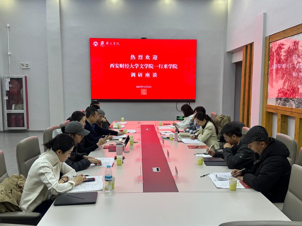 12月2日下午,西安财经大学文学院院长张颖一行到访艺术学院,双方就财经类高校如何高质量发展艺术学科开展座谈交流活动。艺术学院党委书记刘宝璋主持会议,学院美术系、设计系、数字艺术系相关负责人与教师代表共同参与座谈。