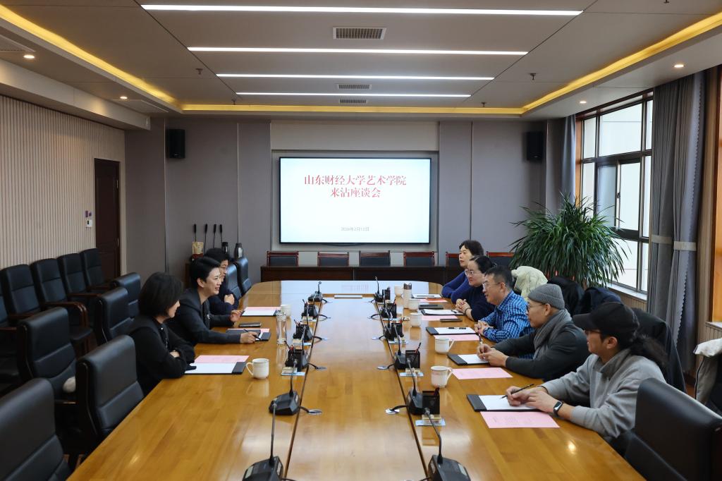 陈玉娟对刘宝璋一行的到来表示欢迎,并简要介绍了沾化区经济社会及文化艺术发展等情况。陈玉娟表示,山东财经大学艺术学院在艺术人才培养、学科专业建设以及文化传承创新等方面经验丰富、成效显著,希望双方深化拓展校地合作,推动沾化文旅产业升级,实现文化艺术与经济社会发展良性互动。