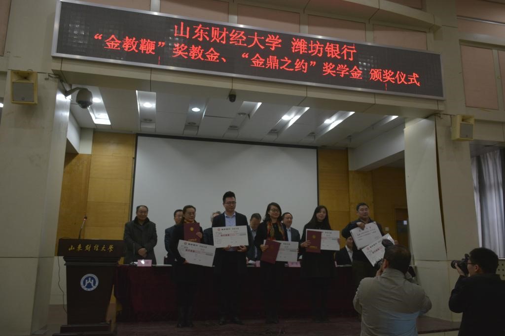 2016年,学校与潍坊银行股份有限公司签署共建艺术金融平台战略协议,建立产学研全方位战略合作关系。潍坊银行股份有限公司为配合学校培养高标准艺术与金融以及艺术与财经相结合的人才、进一步提升教师教学水平和人才培养质量,设立了“潍坊银行金教鞭奖教金”和“潍坊银行金鼎之约奖学金”并成立教育培养经费管理委员会。经过严格的推荐和评审,评选工作小组选拔出优秀教师和学生代表,获奖教师每人将获得8000元奖励,获奖学生每人将获得5000元奖励。