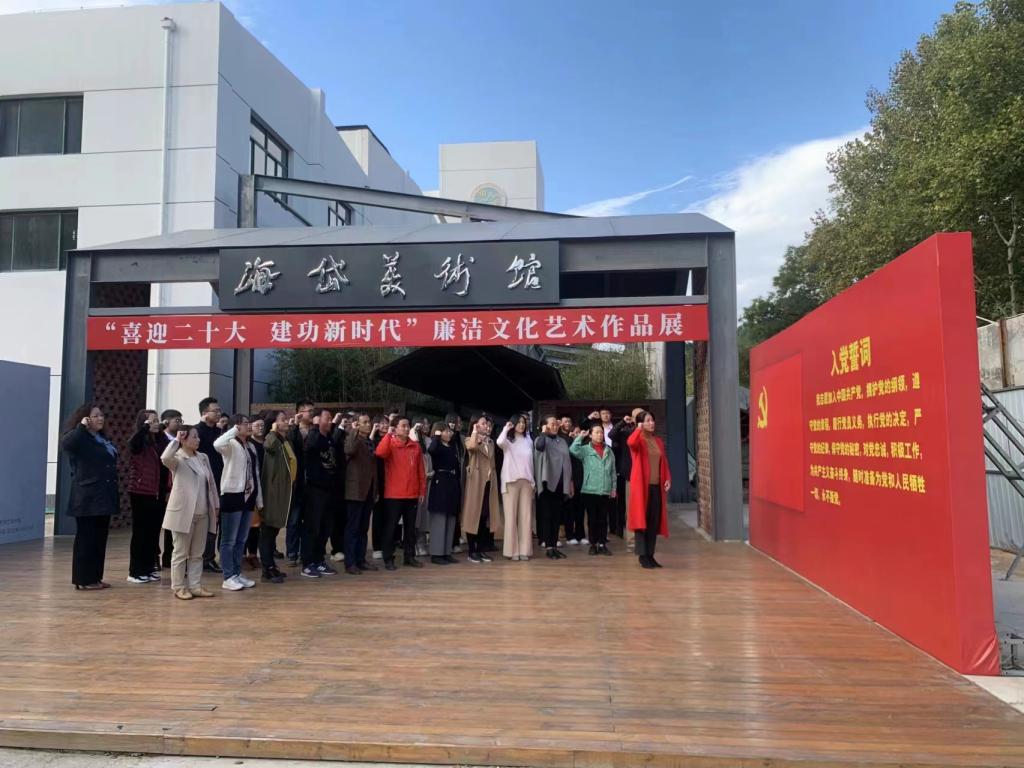 参观作品展前,全体党员在党委书记杨扬的带领下,重温了入党誓词,师生党员高举右拳,誓言坚定,共同表达了为党的伟大事业矢志奋斗、勇于牺牲一切的拳拳初心。