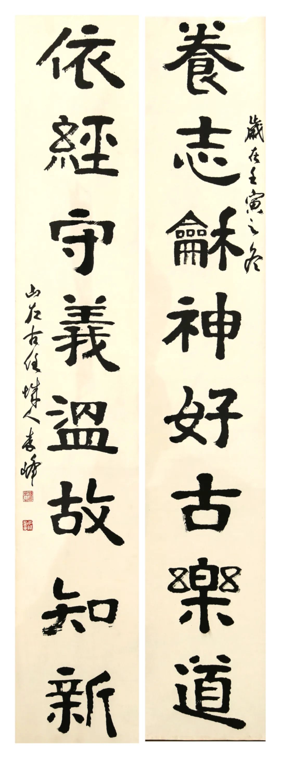 作品:《业精行成联》136cm×45cm×2 纸本书法
