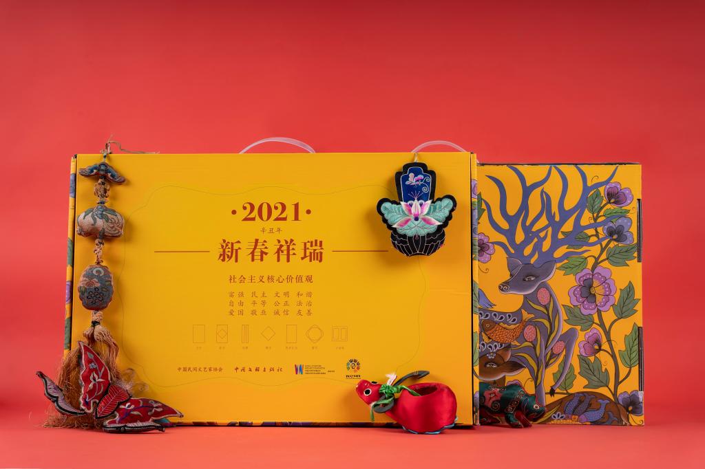 2020年、2021年,学院师生团队设计社会主义核心价值观民艺日历大礼包,连续两年应用于中宣部开展的“送文化进万家活动”。
